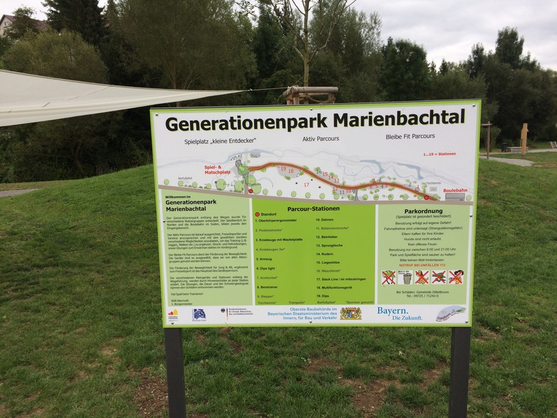 Dieser „Mehrgenerationenpark“ sollte auch Bestandteil des Gesamtkonzeptes im Dittelbrunner Norden sein, das momentan in Frage gestellt ist. Der Gemeinderat hat am 17.8.2015 einstimmig den ersten Planungsauftrag vergeben. Die Bürger wurden in einer Bürgerversammlung am 16.09.2015 von Anfang an mit eingebunden. Ebenso einstimmig erfolgte dann im Gemeinderat das Einverständnis zu der vom AB Perleth vorgelegten Planung mit einem Volumen von 329.275 Euro. Mitte 2016 gab es dann leider im Gemeinderat einige Stimmen, die gegen die Anlage eines Mehrgenerationenparks votierten. Ein Antrag auf Deckelung auf 150.000 Euro wurde Gott sei Dank nicht weiterverfolgt, da diese Deckelung die Funktionalität Parkes so eingeschränkt hätte, dass eine Bezuschussung nicht mehr erfolgt wäre. Dennoch erfolgte eine Deckelung auf rund 250.000 Euro, so dass Sie hier auch noch Lücken im Gerätebestand sehen, die wir hoffentlich im Laufe der Zeit durch Sponsoren schließen können.
