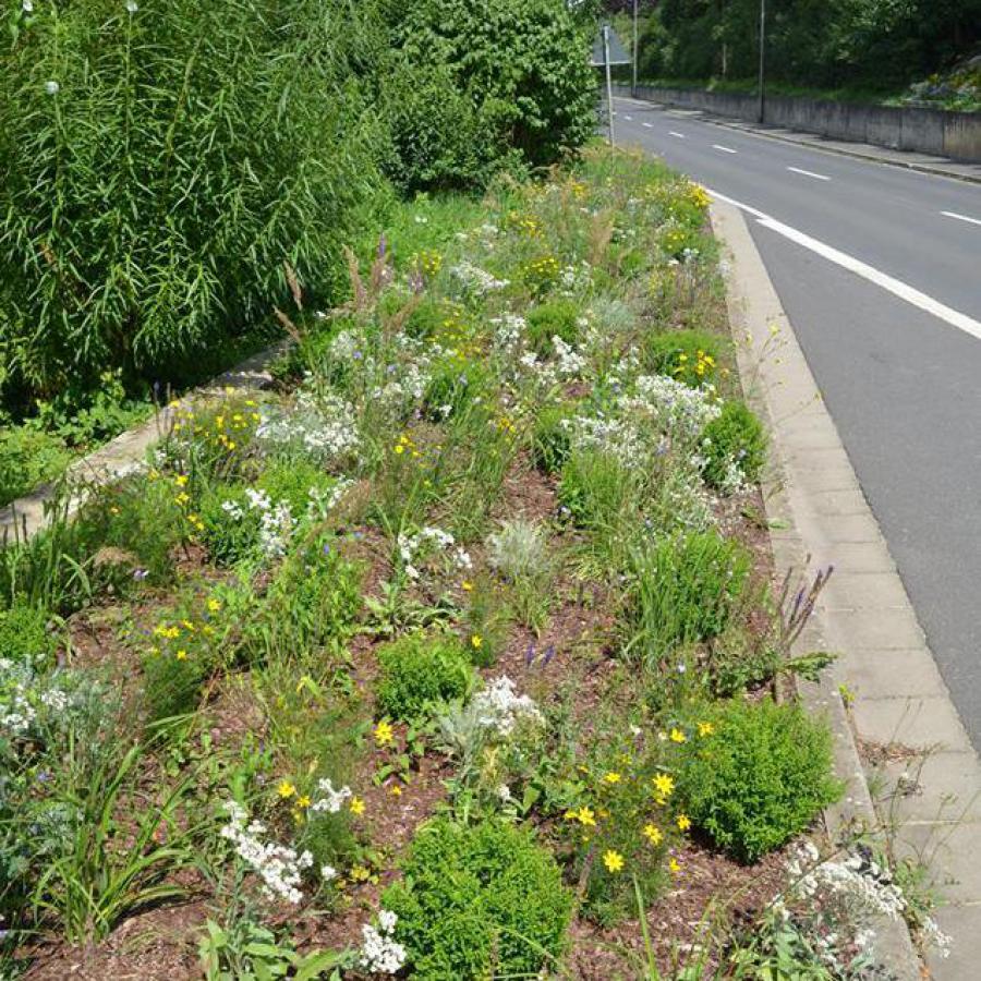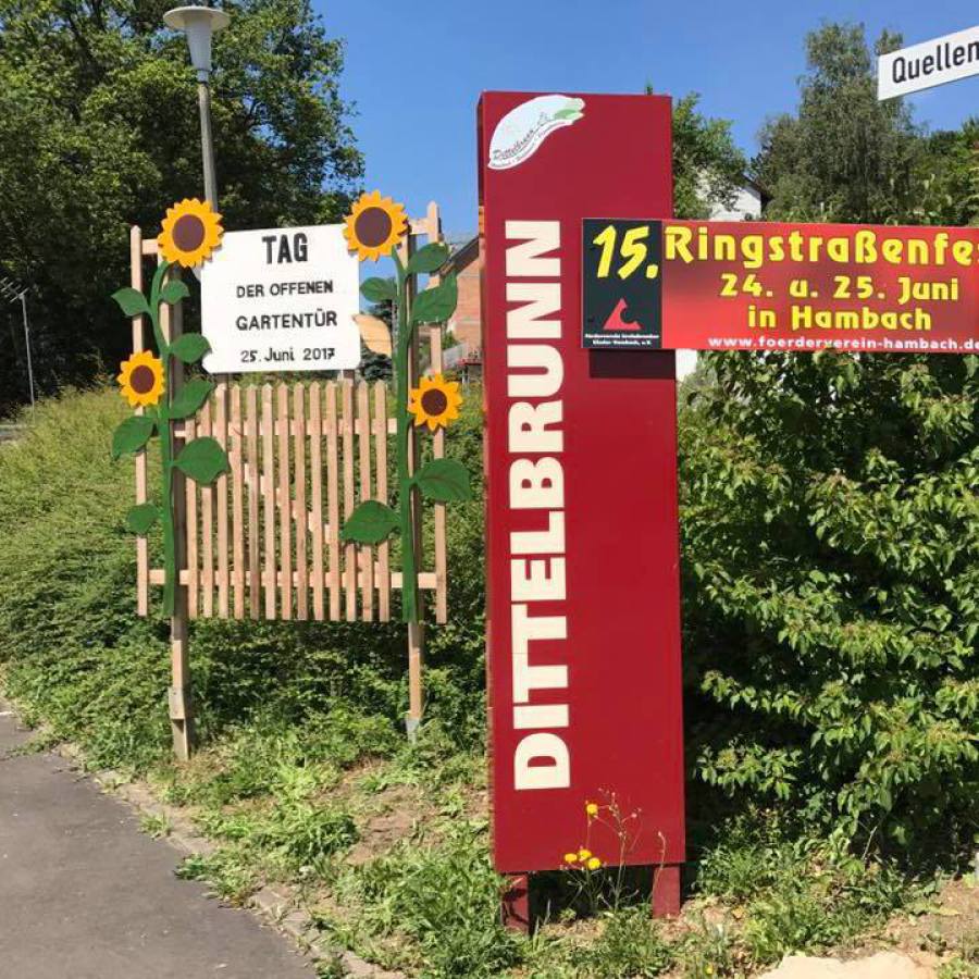 - Punktuelle Neu-Gestaltung von Flächen (z.B. Dittelbrunn Konrad-Kamm-Straße, Ortseingang Hambach-Süd, Holzhausen Bank-Standorte, Ortseingang Dittelbrunn-Nord,